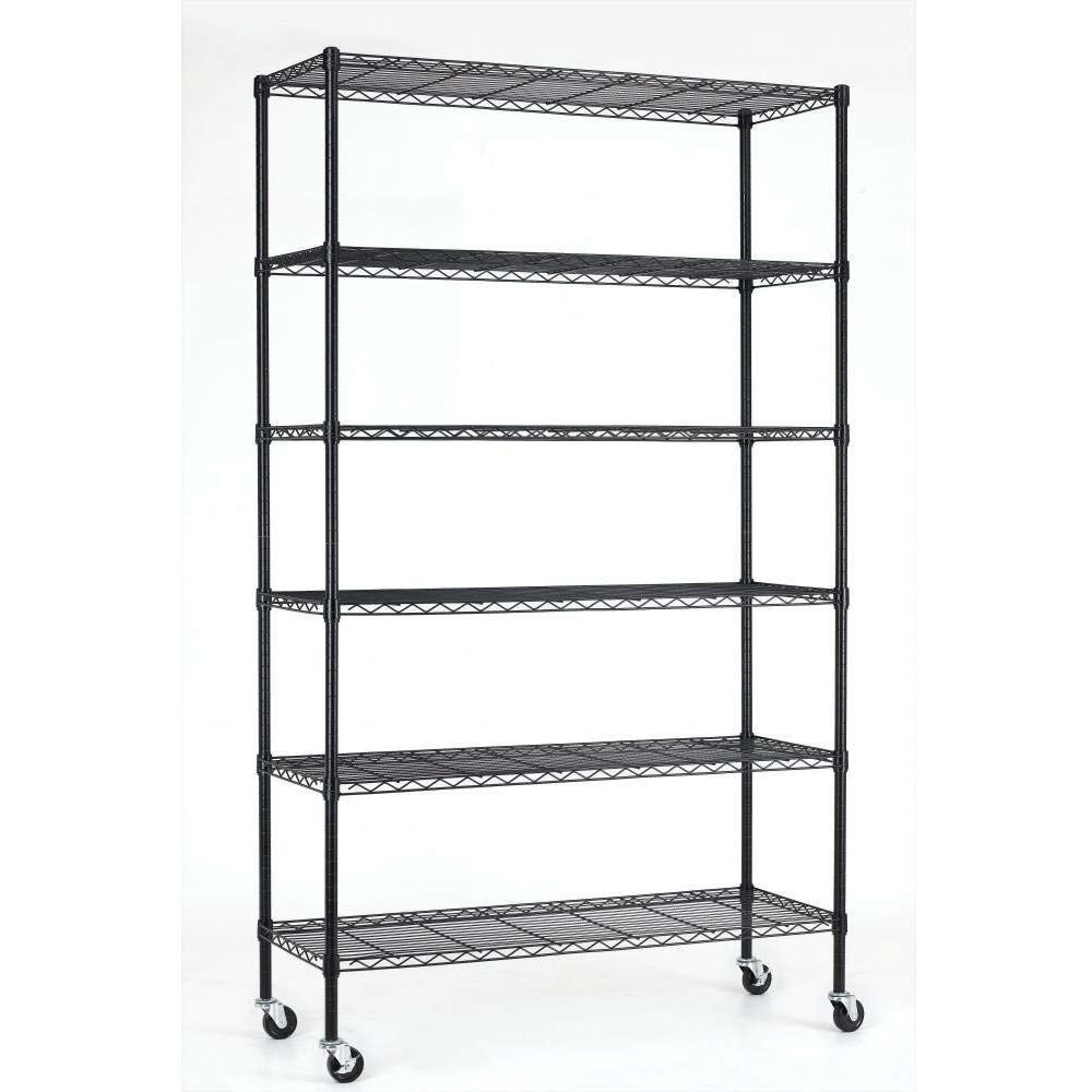 This is 6 tier wire shelf, you only need to spend 15min to install it. This Heavy Duty 6-Shelf Adjustable Metal Shelving Rack with Casters is made of steel wire shelving. Maximum weight capacity per shelf is 350lbs when equally distributed on feet levelers. Maximum entire unit weight capacity is 500lbs when equally distributed on casters. You can use the feet levelers or wheels to suit your needs. The storage rack provide an enormous amount of space for you. You can use this wire shelving in the kitchen bedroom garage. Immovably or portability, use the feet levelers or wheels to suit your needs. Multifunctional, suitable for bathroom kitchen garage and more, tools, books, clothes, bag and other things can be placed on it.